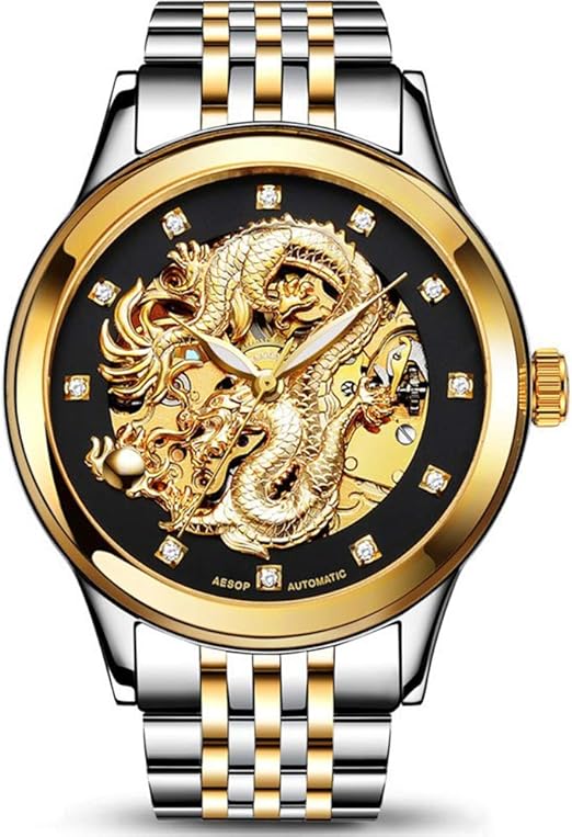 Amazon Com Teintop Aesop Men S Watch Automatic Mechanical Chinese Dragon Skeleton Silver Black Clothing Shoes Jewelry